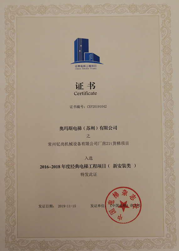 令人欢欣鼓舞的是:我公司凭“常州钇尚机械设备有限公司厂房21T 超吨位载货电梯”项目在众多候选工程中脱颖而出,荣获”新安装类经典电梯工程项目”奖杯与证书。我司李金伟副总代表公司出席并上台领奖。(见下列图片)