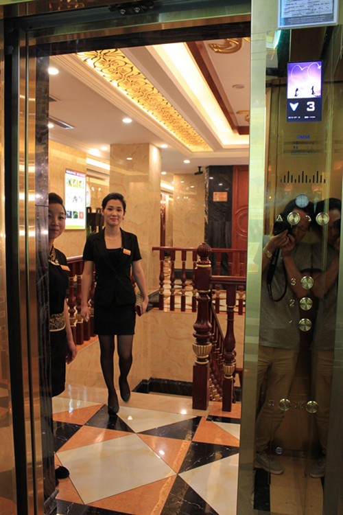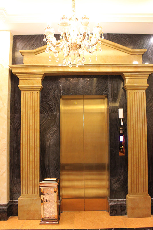 有道是“好马配好鞍”。荣耀体育网页版官网电梯,素以高标准部件配置, 高品质的运行舒适感,完美的售后服务来赢得客户的青睐。现安装在该店内的800KG豪华型客梯为公司2015年款, 该产品设计上采用全钛金蚀刻不锈钢轿厢与厅轿门结构, 轿内厅外全配有彩色液晶显示屏,与该店的整体装璜风格相得益彰,完美匹配,更进一步突显该店的“高大上”风范。我们在与该店老板丁总的交谈中得知,丁总对该电梯的整体装璜与运行品质是倍加赞赏的。