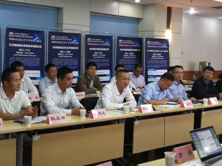本次产学研合作对接会安排在办公楼16层会议室内召开,组织与接待规格较高:出席参加的校方领导有:李成福校长、李季主任及各个专业的教授们;出席参会的科技局领导有季小峰局长、潘宏亮主任;参会的企业有荣耀体育网页版官网电梯、江苏永鼎、江苏凯伦建材等20多家吴江的本地企业。会议由潘宏亮主任主持。先由科技局的领导向校方简要的说明了本次活动的目的与意义,然后李成福校长进行了热情洋溢地发言:一是欢迎广大吴江区的企业家走进西安交大,二则希望通过此类活动,让学校的更多的科研成果联姻到好的企业落地开花;紧接着由校方的各位专业教授通过PPT形式来介绍近期已取得的重大科研成果与实验室产品。校方成果介绍与展示完毕后,由二家企业代表(荣耀体育网页版官网电梯、伊之密机器人)进行对本企业生产与经营情况介绍与需要创新技术需求的描述。