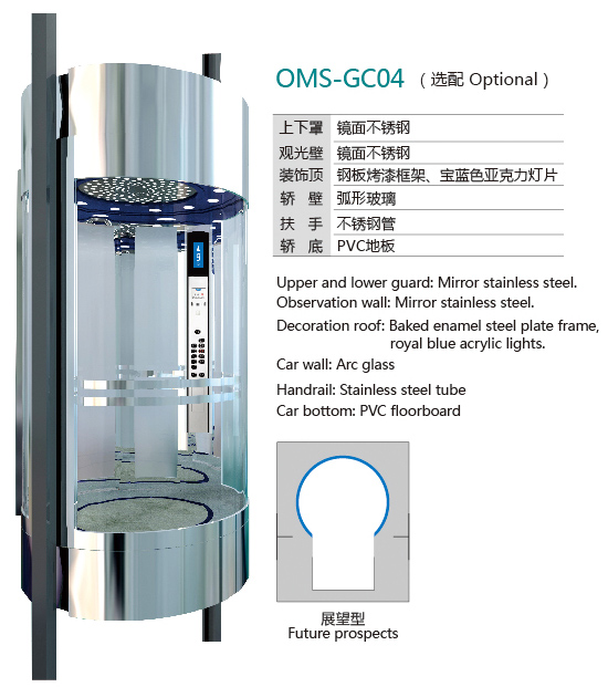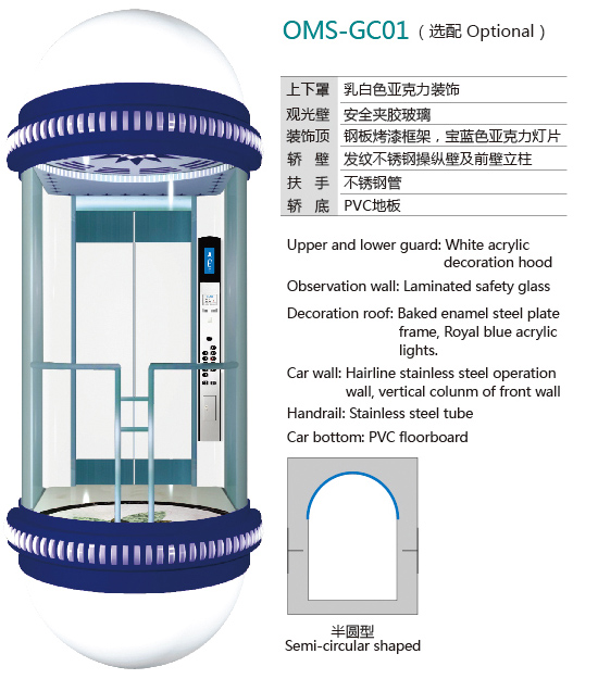 ◆观光电梯玻璃钢结构不仅完美的展现了紧凑的空间、和整体的美观。还可以根据不同的土建设计、方便快捷,一般都采用圆形、半圆型、和方形。